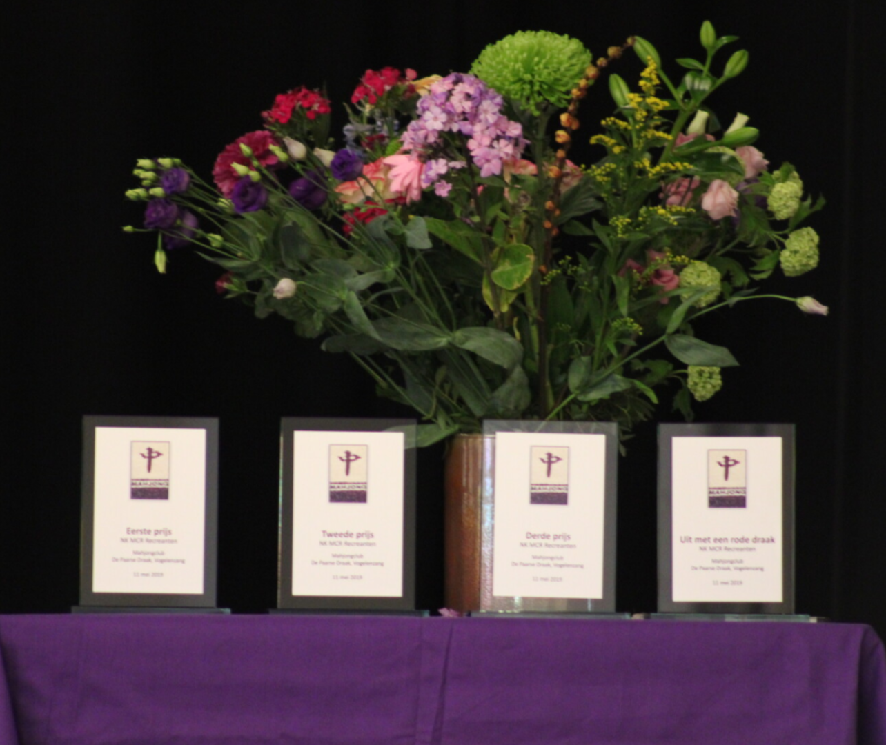 Organisatie, aankleding en sfeer, superlatieven te kort. Wat een dag! Een Mahjong-toernooi voor recreanten en tevens NK, georganiseerd door de Paarse Draak - een Mahjong-vereniging van notabene net een jaar jong (!) - is ronduit een succesverhaal. Met de deur in huis gevallen: chapeau aan de vrijwilligers, hun planning, organisatie en aankleding van het Dorpshuis!